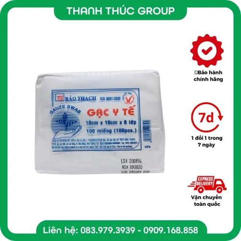 Sản phẩm [100 Miếng] Gạc Y TẾ Đắp Mặt Nạ 10cm x 10cm x6 lớp Bảo Thạch là lựa chọn hoàn hảo cho quy trình chăm sóc da chuyên nghiệp tại spa, thẩm mỹ viện hoặc tại nhà.