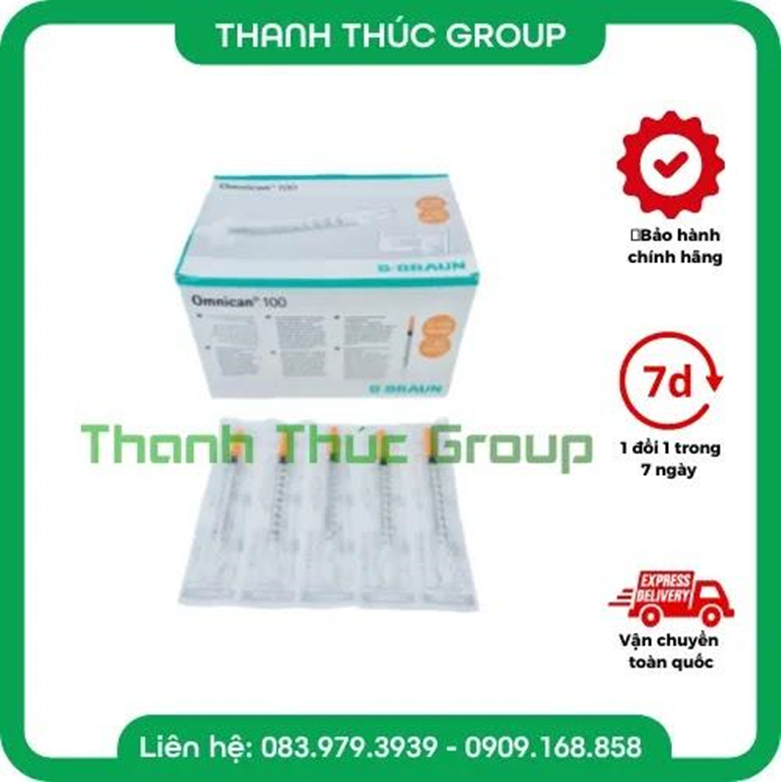Bơm Kim Tiêm Tiểu Đường Insulin B Braun Omnican Đầu Cam