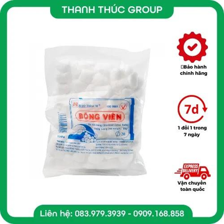 Bông Gòn Viên Bảo Thạch Tiệt Trùng Gói 50g