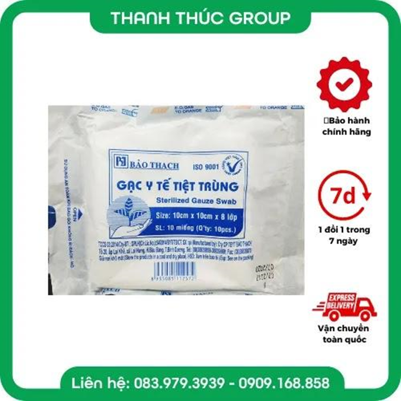 • Tên sản phẩm: Gạc Y Tế Tiệt Trùng Bảo Thạch
