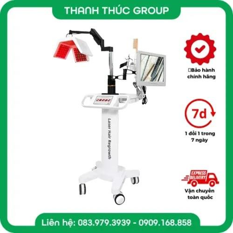 • Áp dụng công nghệ Laser cấp thấp (LLLT) và đèn LED quang phổ rộng (như đỏ 630nm-660nm), giúp kích thích tế bào nang tóc và tăng cường lưu thông máu dưới da đầu.